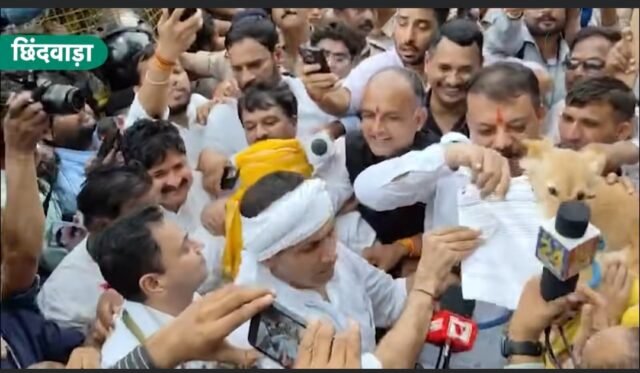 छिंदवाड़ा । 20 अगस्त को पूर्व सांसद नकुलनाथ के नेतृत्व में छिंदवाड़ा में हुए विशाल किसान आंदोलन के दौरान कलेक्टर कार्यालय में ज्ञापन सौंपने पहुंचे प्रदेश कांग्रेस कमेटी के अध्यक्ष जीतू पटवारी नेता प्रतिपक्ष उमंग सिंगार पूर्व सांसद नकुलनाथ जबलपुर के विधायक और पूर्व मंत्री लखन गंगोरिया सहित कई कांग्रेस के कई बड़े नेताओं ने कलेक्टर कार्यालय में पहुंचकर कलेक्टर को बुलाने की मांग की । ताकि उन्हें किसान आंदोलन और किसान की मांग का ज्ञापन सौंपा जा सके। लेकिन 1 घंटे इंतजार करने के बाद भी कलेक्टर नेताओं से ज्ञापन लेने नहीं पहुंचे। आखिरकार कांग्रेस के आला नेताओं ने इस बात के विरोध का एक अनोखा तरीका निकाला ।